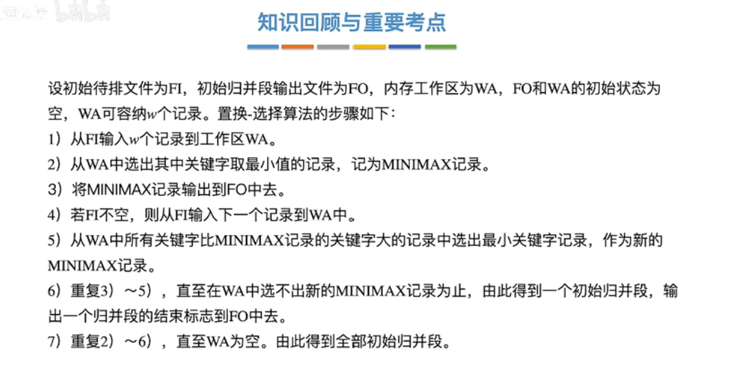 - 外部排序的时间开销=读写外存的时间+内部排序的时间(生成初始归并段)+内部归并所需时间;时间主要花在了读写外存上